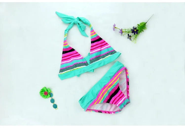 2016 New Summer girls Close-fitting elastic stripe swimsuit girls split Two-pieces Swimwear, children stripe bikini wholesale