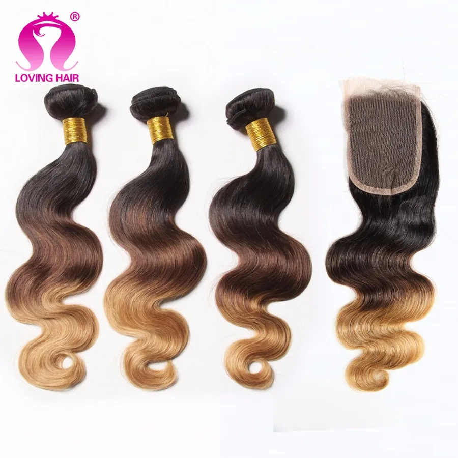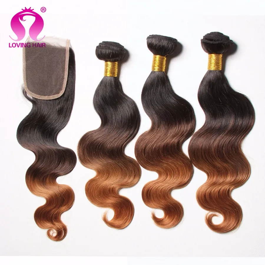 Ombre Brazilian Virgin Hair With Closure 8A Brazilian Body Wave With Closure 3 Bundles With Ombre Body Wave Lace Closure
