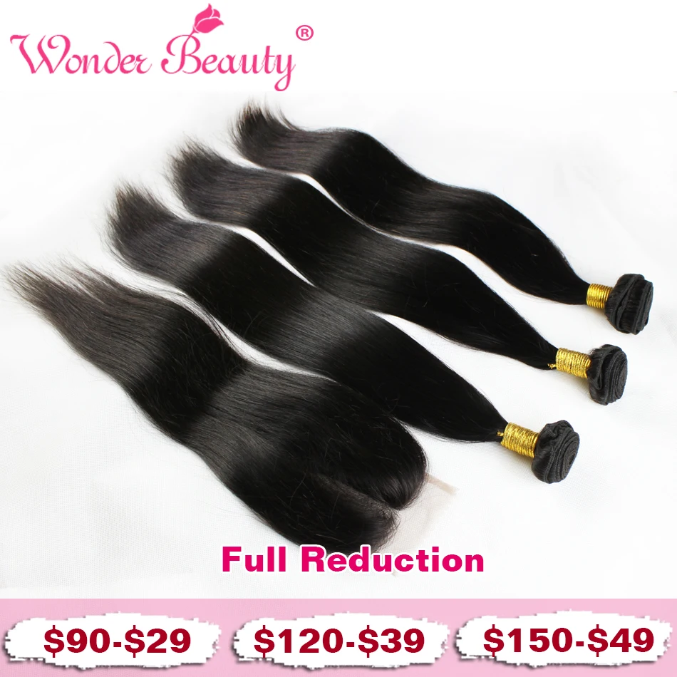 Peruvian Virgin Hair Straight With Closure 3 Bundle Deals Wonder Beauty Unprocessed Straight Human Hair Weave With Lace Closure