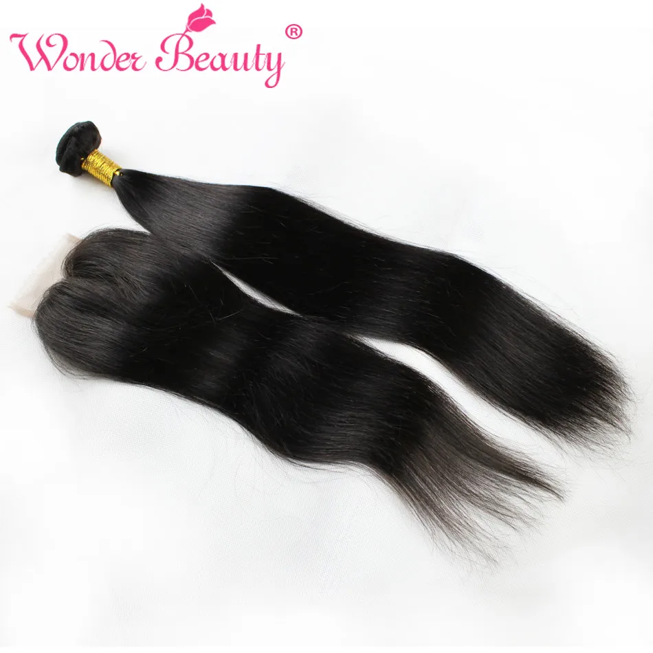 Peruvian Virgin Human Hair Straight With Closure 3 Bundles Wonder Beauty Straight Hair With Middle Free Three Part Lace Closures