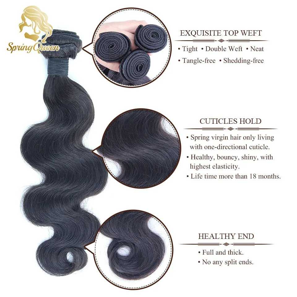 Spring Queen Hair Brazilian Body Wave Human Hair 3 Bundles 7A Grade Brazilian Virgin Hair Body Wave Brazilian Hair Weave Bundles