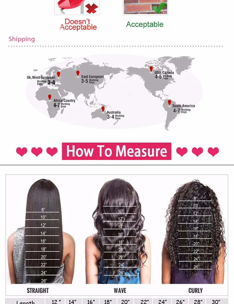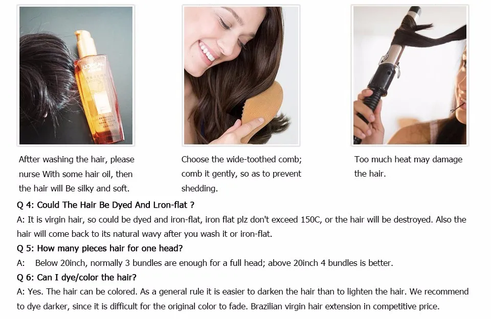 6) Body wave/ Loose wave/ Deep wave/ Straight/Kinky curly available