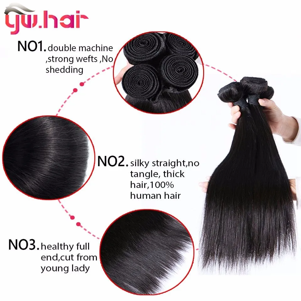 Youwin human hair Brazilian Virgin Hair Straight 3Bundles Brazilian Straight Virgin Hair Weave 7A Straight Human Hair Extension
