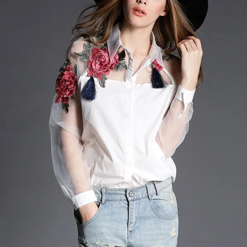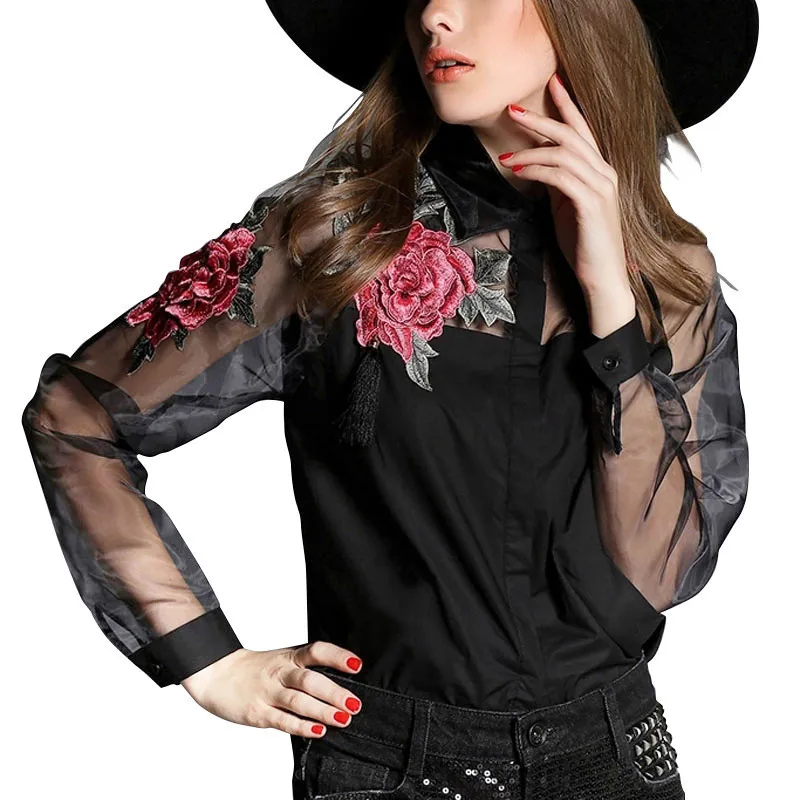 Zanzea Fashion Blusas 2017 Summer Elegant Women Blouse Flower Embroidery Vintage Shirts Organza Sleeve Tops Plus Size S-3XL