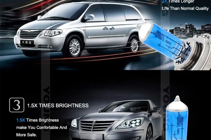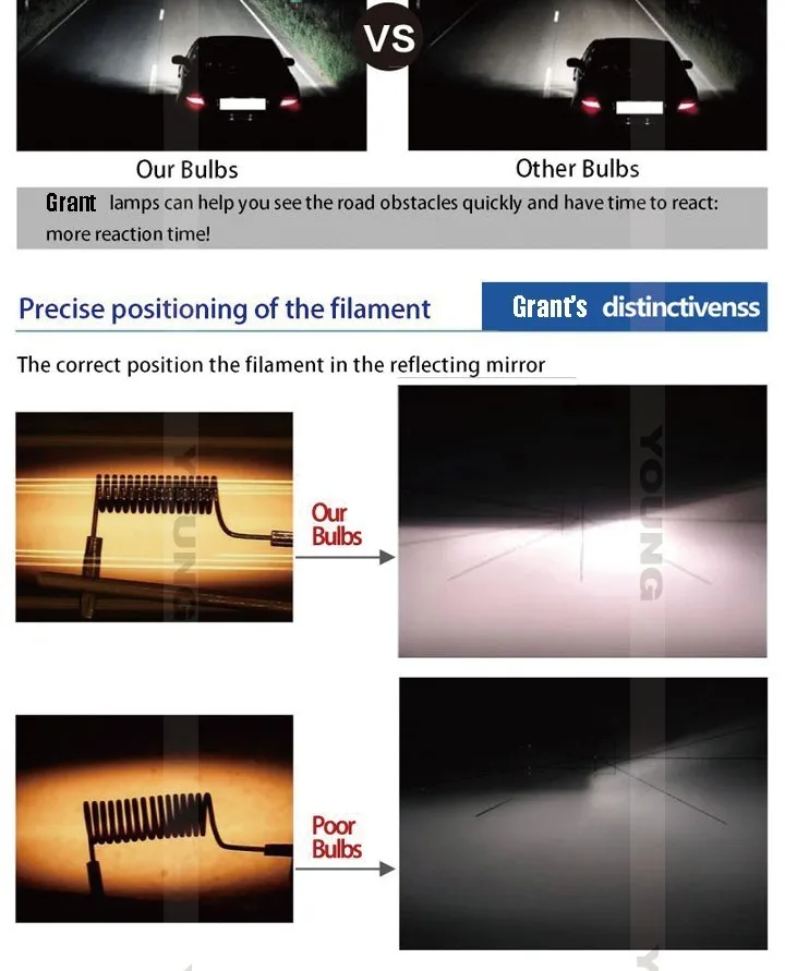 1Set GRANT H4 12V 100/90W Xenon Halogen Bulbs 6000K Super Bright White Universal Auto Headlight Replacement Lamps For Car