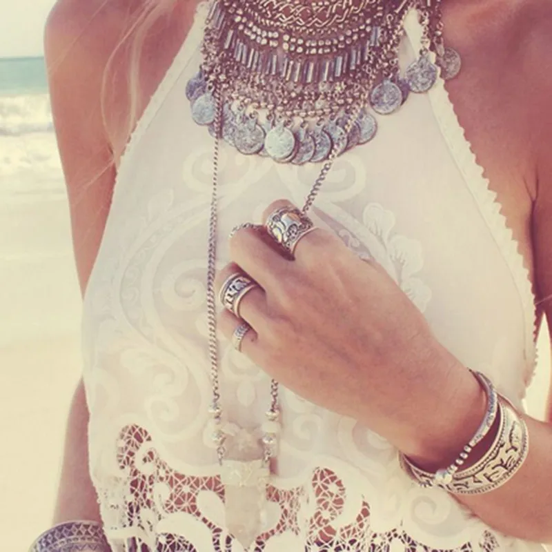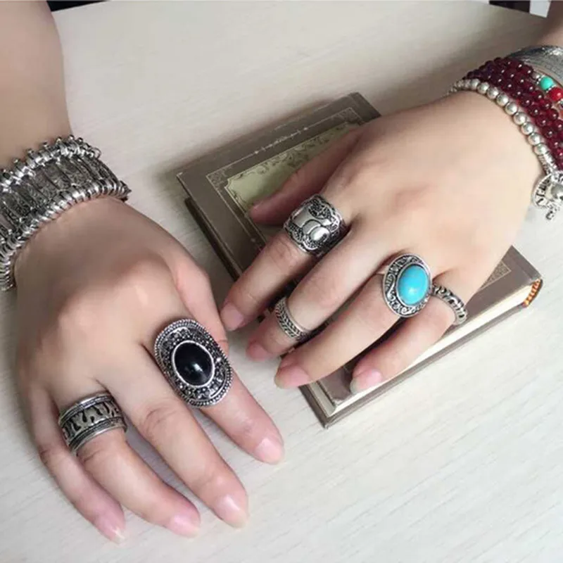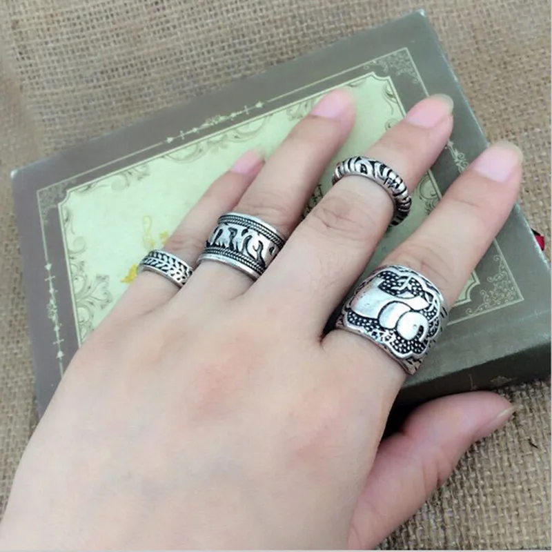 Bohemian Style 4pcs/Pck Vintage Anti Silver Color Rings Elephant Totem Leaf Lucky Rings Set for Women Party Free Shipping