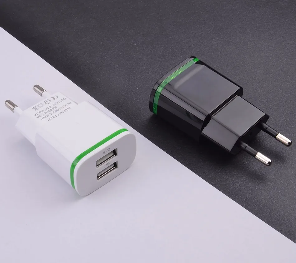 CinkeyPro EU Plug 2 Ports LED Light USB Charger 5V 2A Wall Adapter Mobile Phone Micro Data Charging For iPhone iPad Samsung