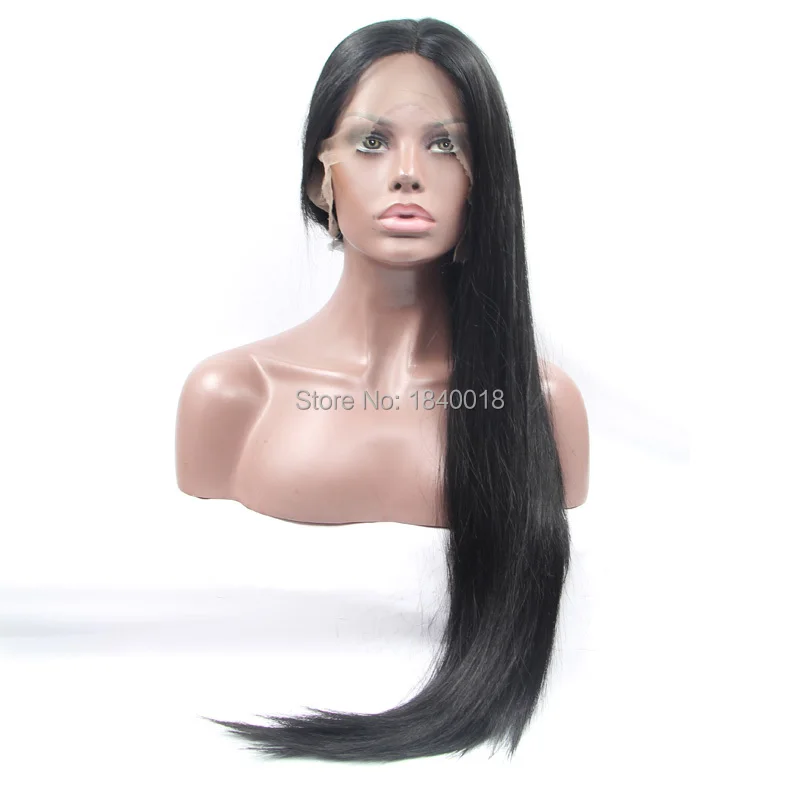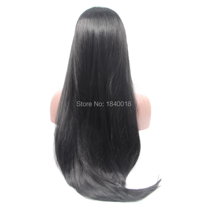 high quality natural look black long silky straight wigs middle part synthetic lace front wig heat resistant fiber in stock