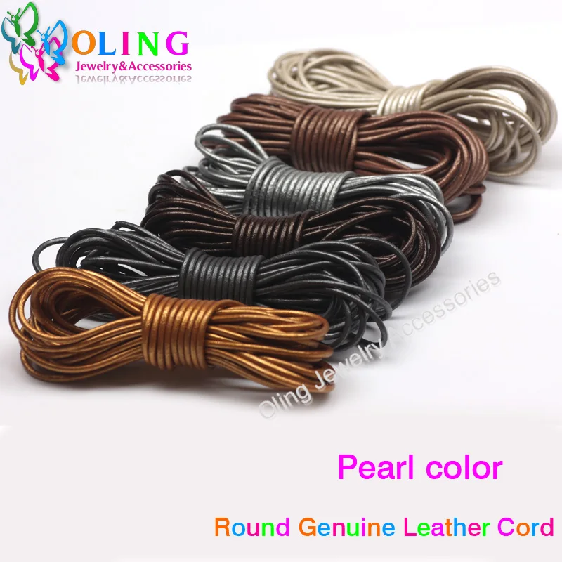 2mm 5M/Lot Craft Color Round pearl color Genuine Leather Cord/Wire/Fashion Jewelry DIY necklace Bracelet Cords