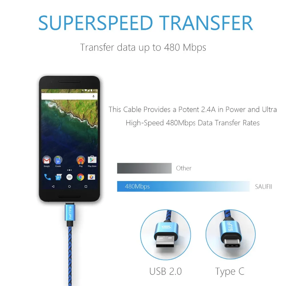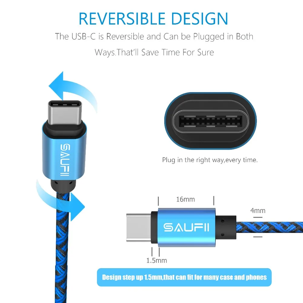 Original SAUFII USB Type C Cable for Macbook OnePlus 2 3 Type-C Charger Wire ZUK Z1 2 USB Type C Cables Fast Charging Letv