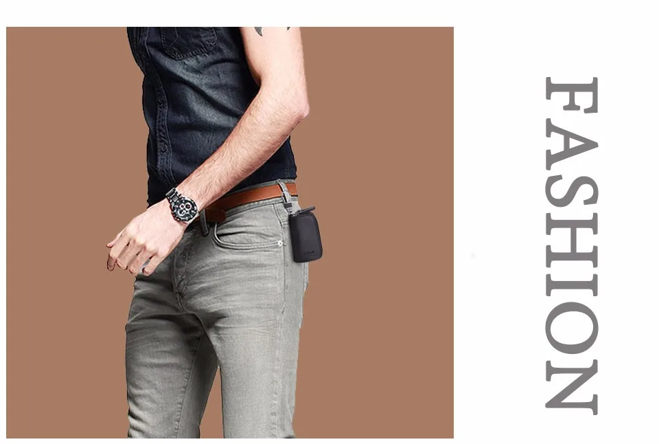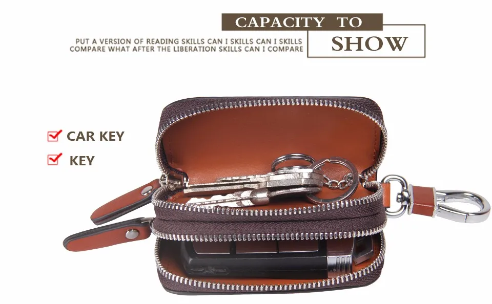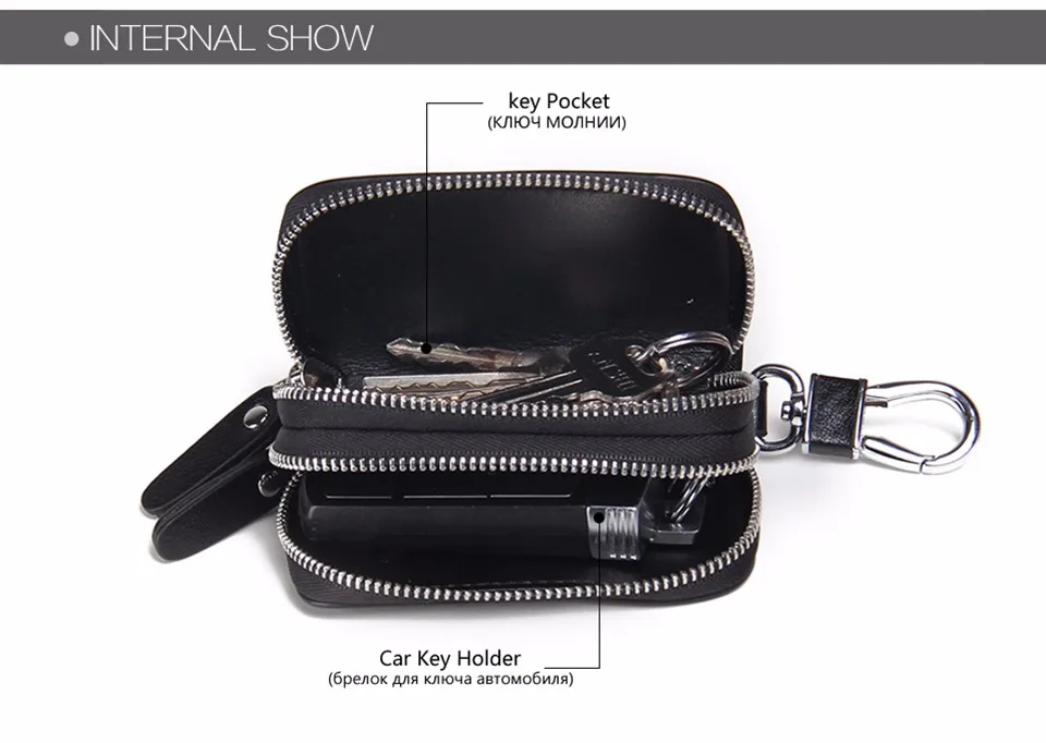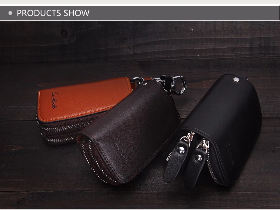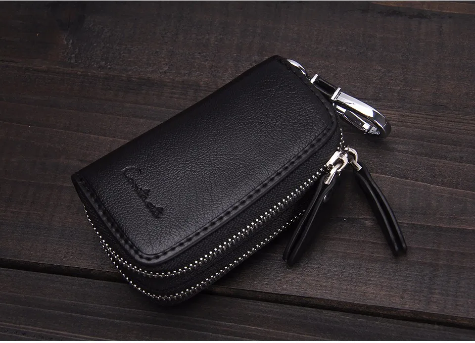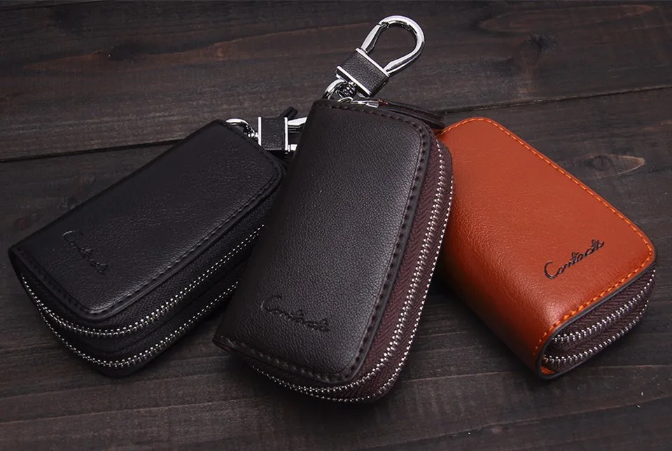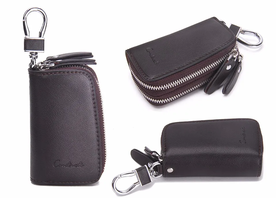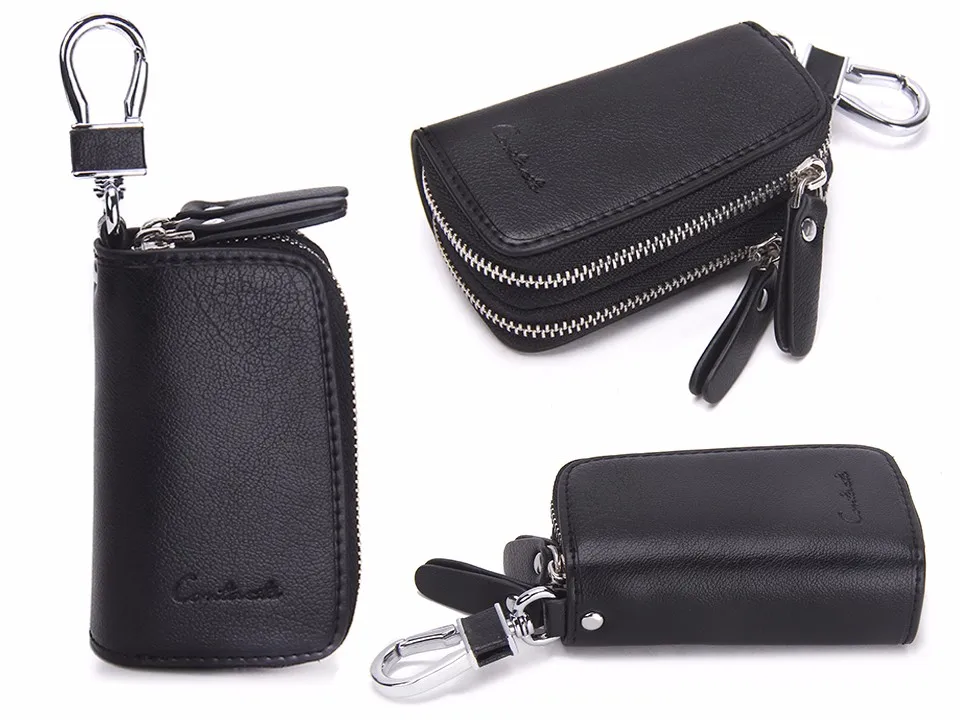 CONTACT'S Classic New Double Zip Men's Genuine Cow Leather Car Key Holder Multifunction Housekeeper High Class Motor Key Case