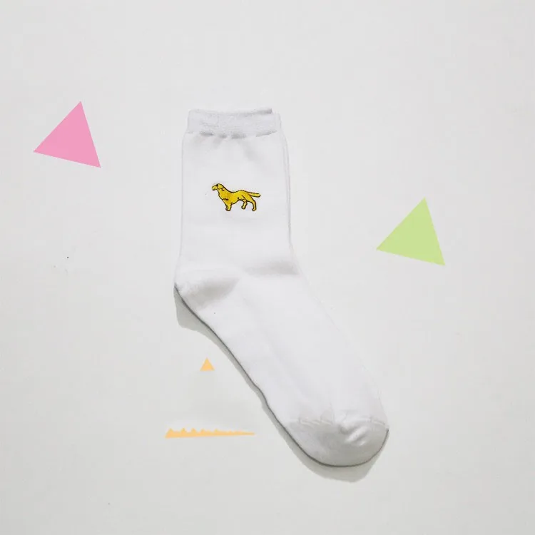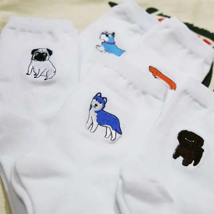 cute animal husky embroidery women cotton white socks lovely dog Jacquard female pure color socks funny kawaii pug meias soks