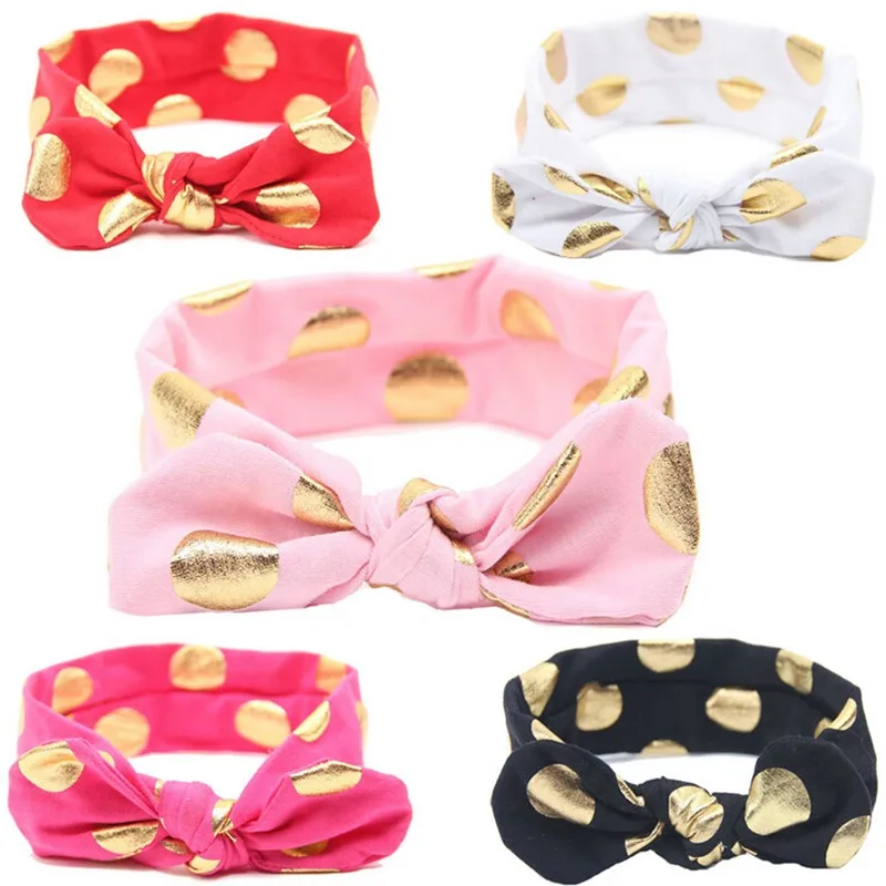 1 PCS Gold Polka Dots Newborn Cotton Headband Girls Knotted Bow Head Wraps Summer Hair Bands Headband Kids Hair Accessories