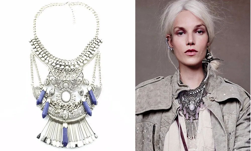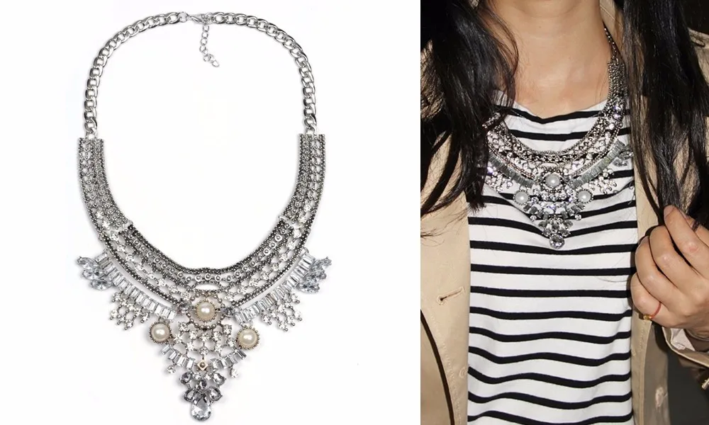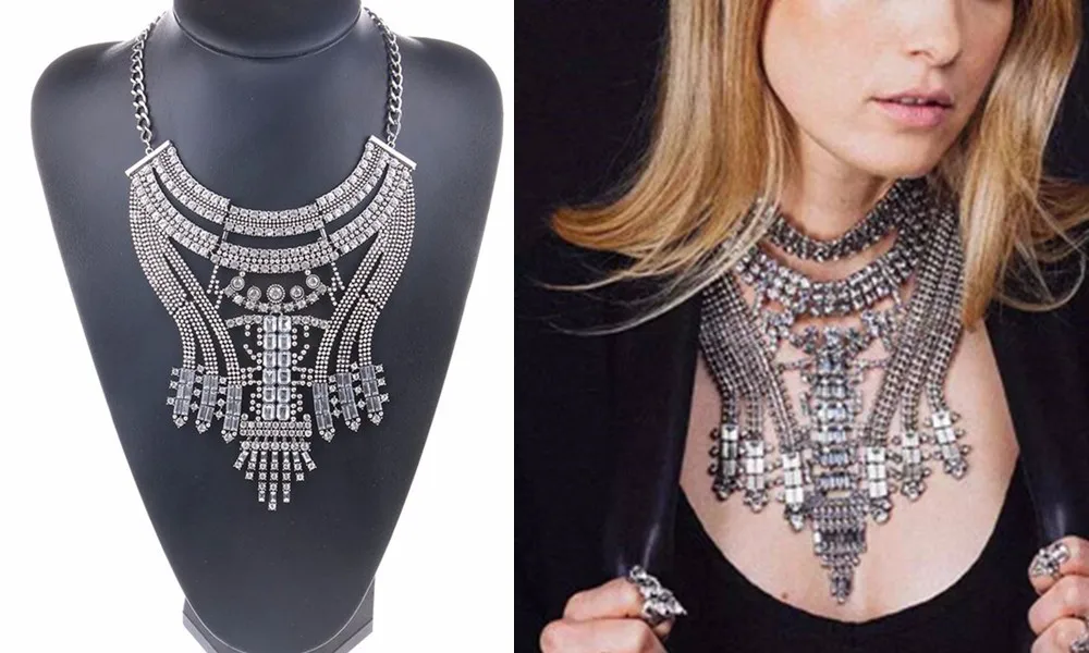 2016 HOT Statement Necklaces & Pendants Vintage Crystal Maxi Choker Silver Collier Femme Boho Big Fashion Women Jewellery