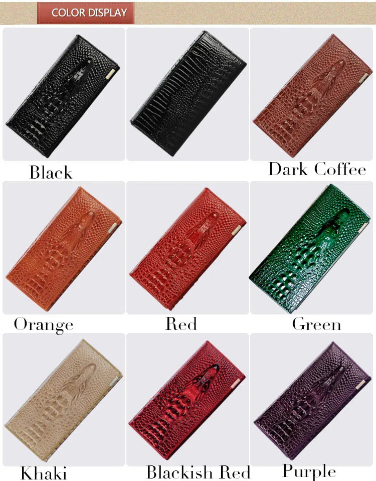 Black Friday Fashion Genuine Leather Women Clutch Wallet 3 Fold Crocodile Head Woman's Purse Carteras Cellphone Bag