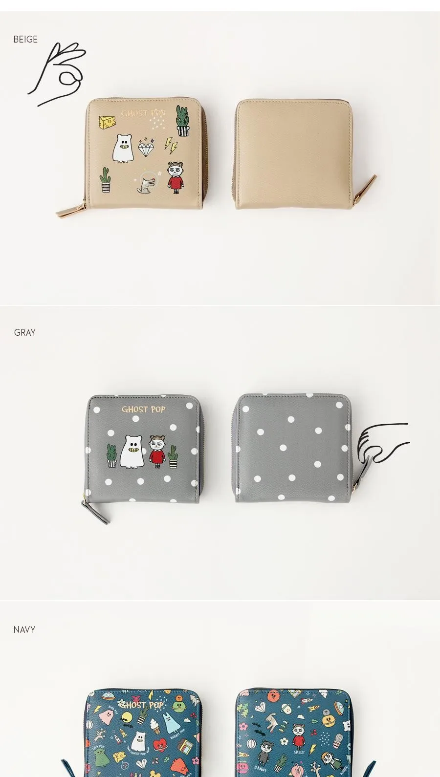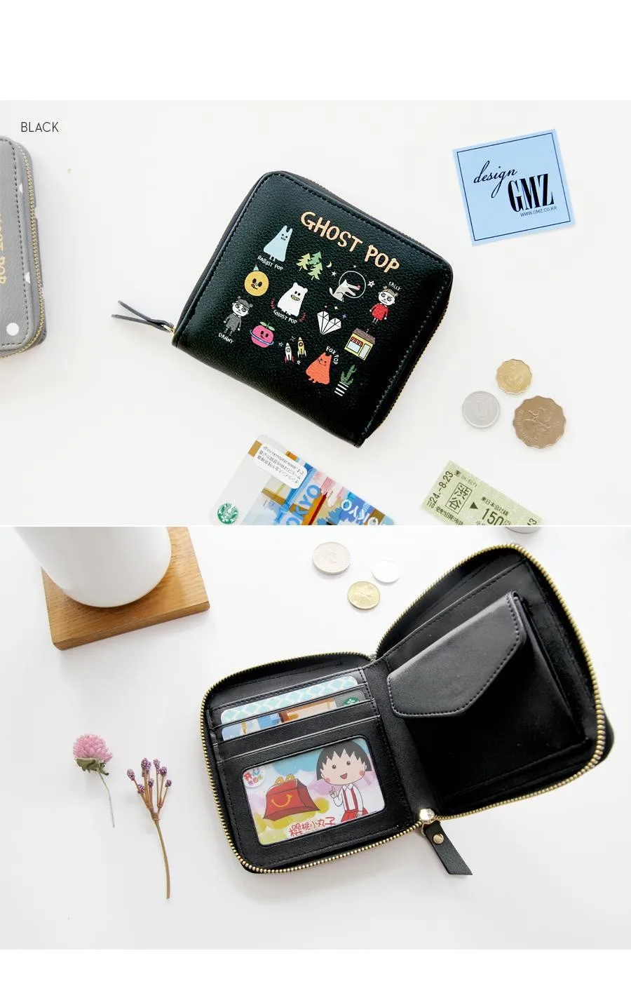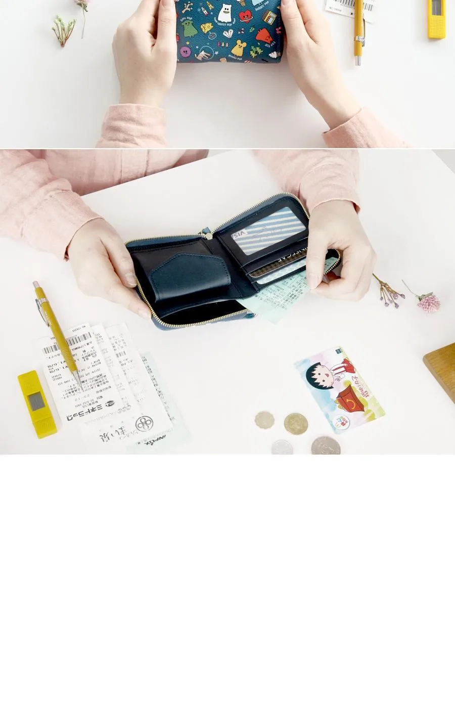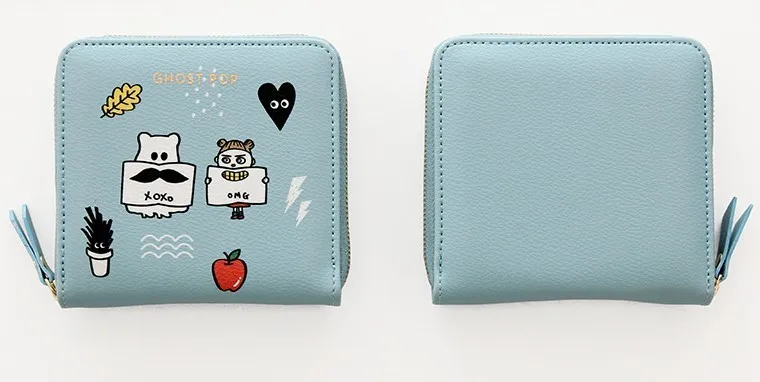 Cute Cartoon Printed Short Purses Dollar Price Card Holder Carteira Feminina PU Leather Zipper Coin Female Purse Black Beige