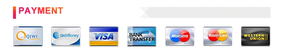 1) We accept Alipay, West Union, TT. All major credit cards are accepted through secure payment processor ESCROW.