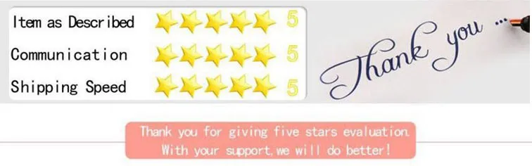 1. 5 stars feedback is very important to us, if you are satisfied with our service, please give usa 5 stars positive feedback. And If upload buyer shower or item show, will have a chance to get a gift next order.