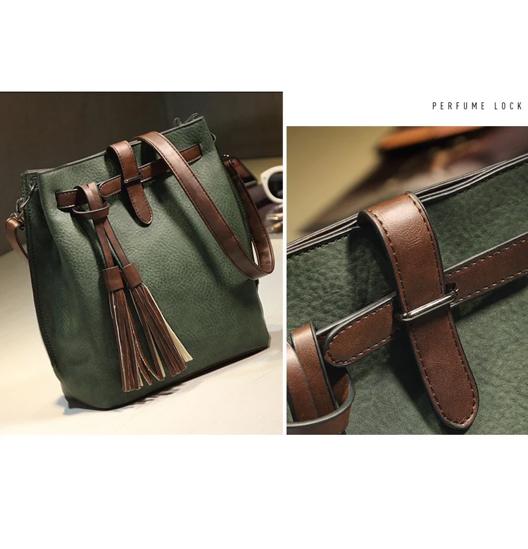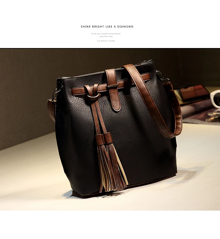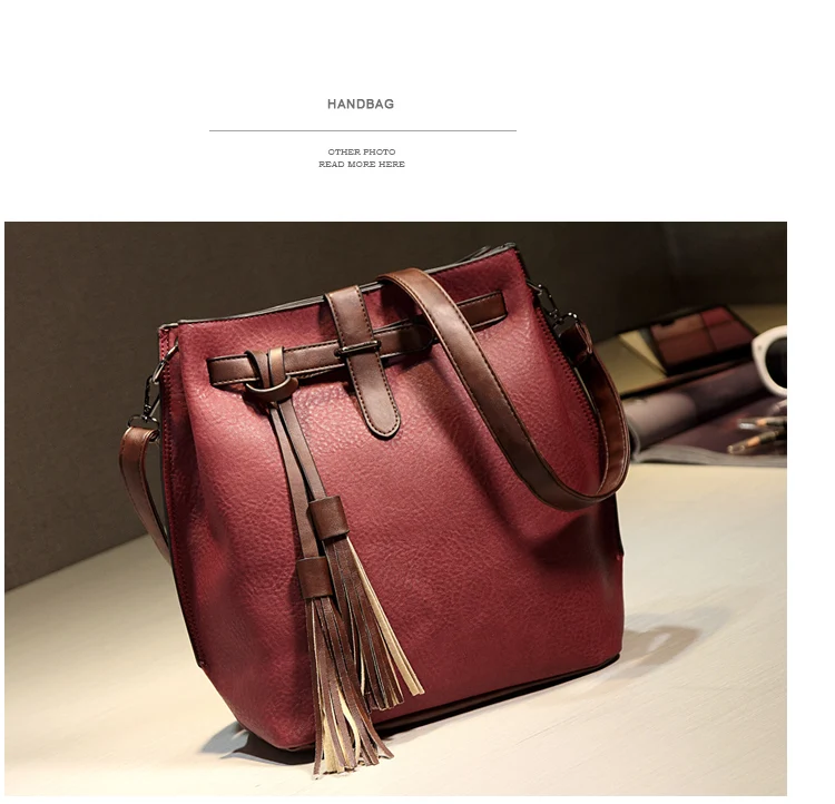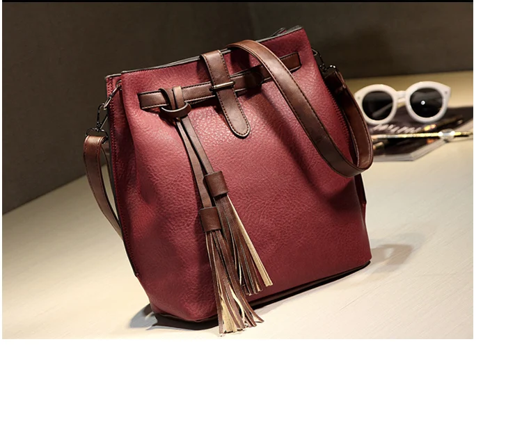 HISUELY Hot Sale New Women PU Leather Handbags Tassel Fashion Designer Black Bucket Vintage Shoulder Bags Women Messenger Bag