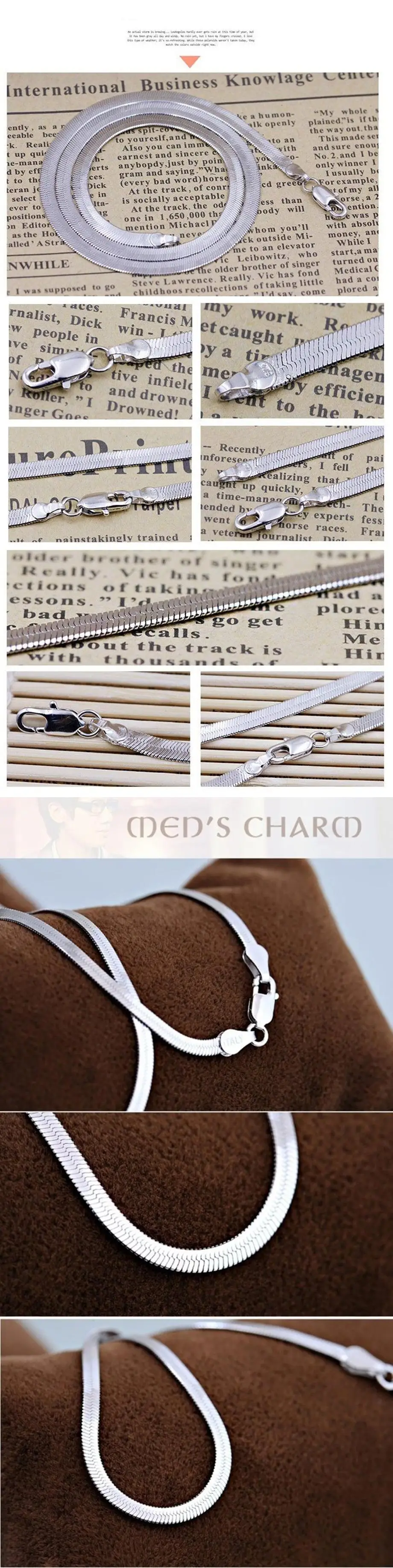 Ms. 2016 new silver necklace flat snake bone chain men domineering fashion high quality jewelry 45CM-50CM