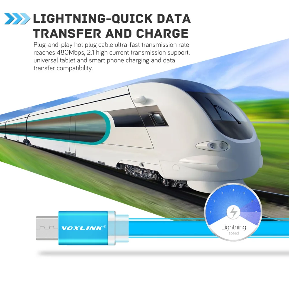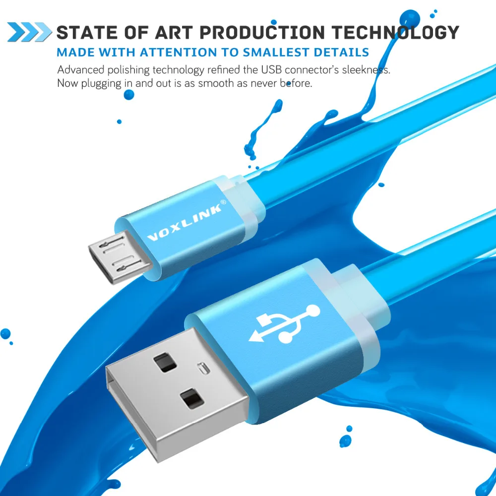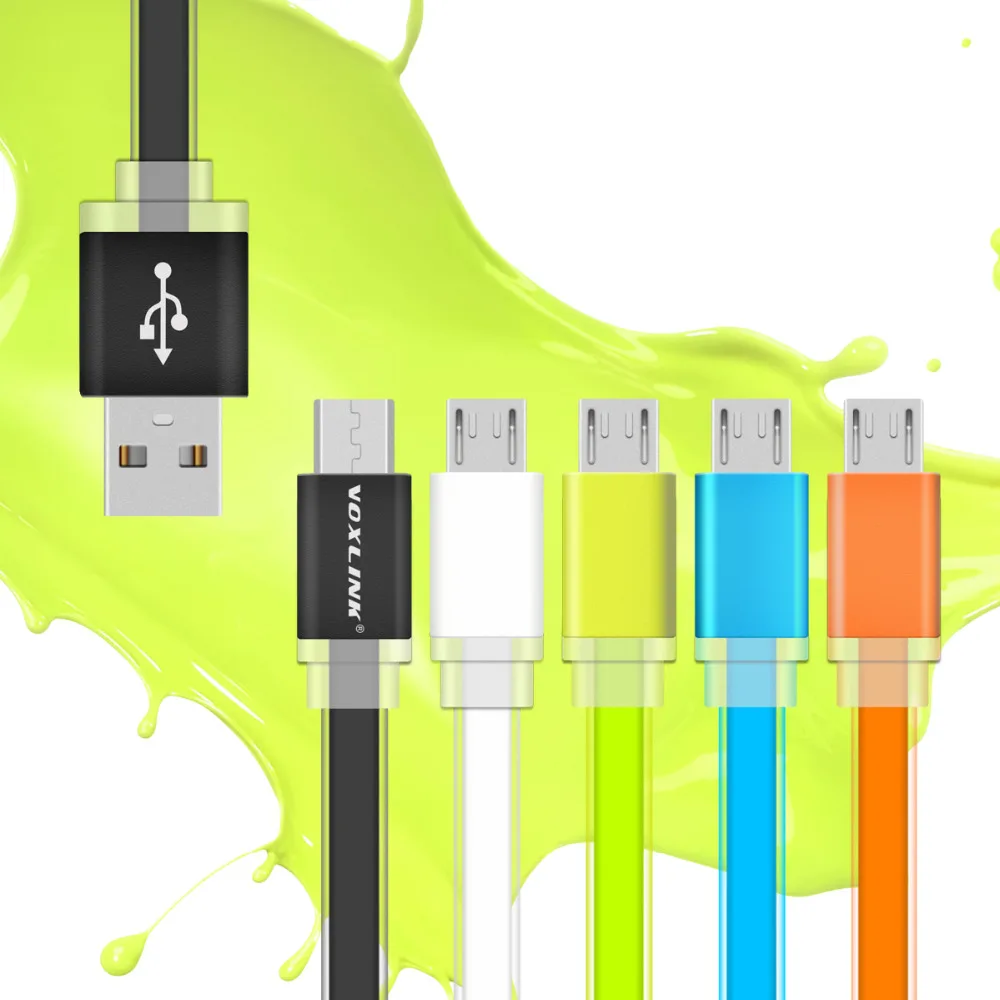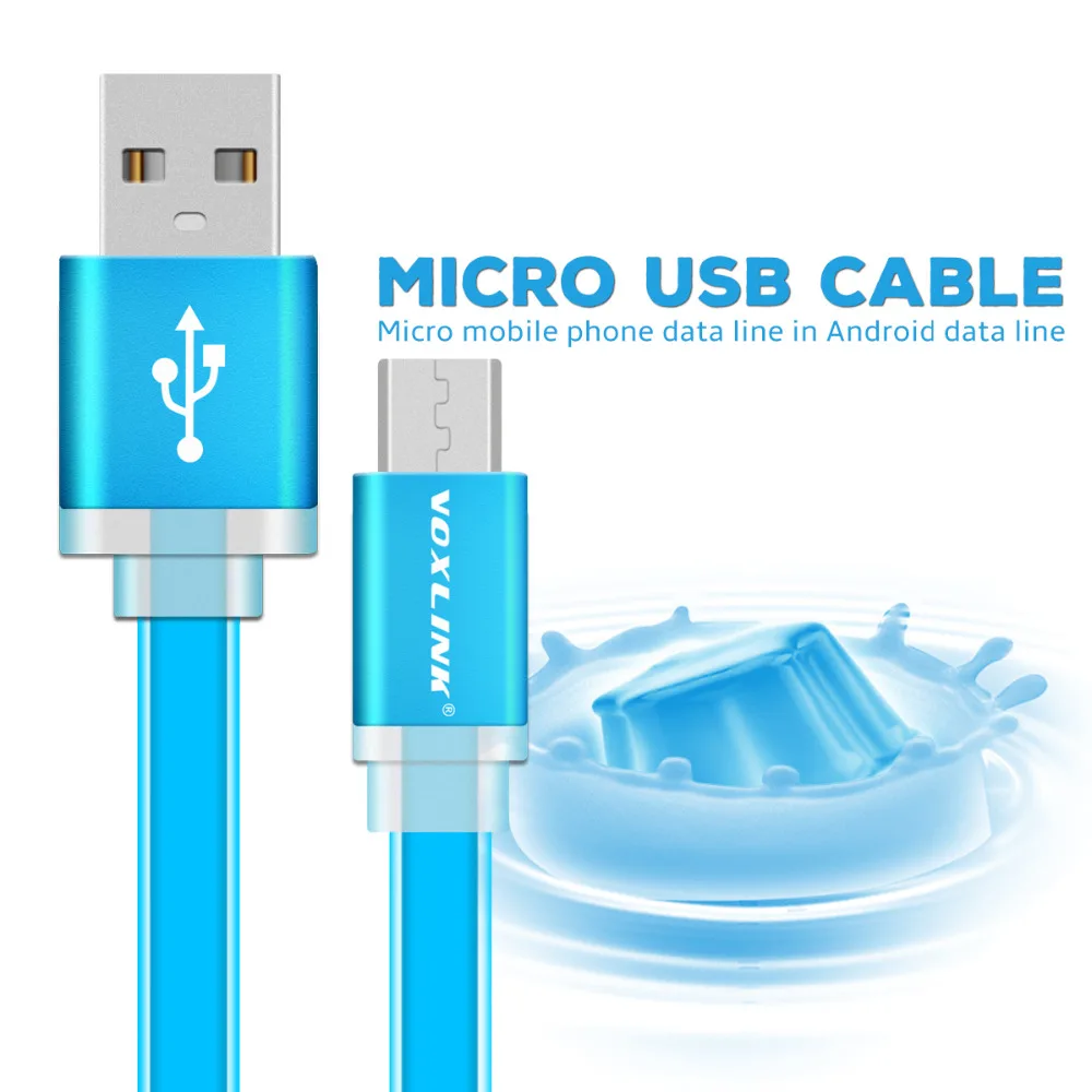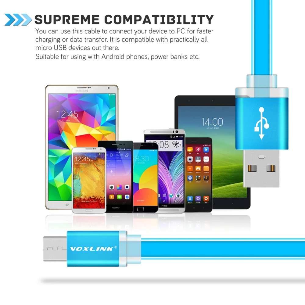 VOXLINK 1m/2m/3m Universal Flat Noodle Micro USB Charger Sync Data Cable for Samsung HTC LG Sony huawei xiaomi Android Phones