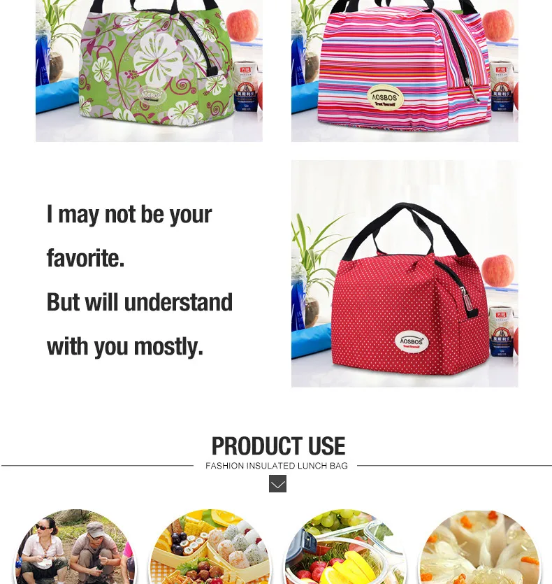 Aosbos Fashion Portable Insulated Canvas lunch Bag Thermal Food Picnic Lunch Bags for Women kids Men Cooler Lunch Box Bag Tote