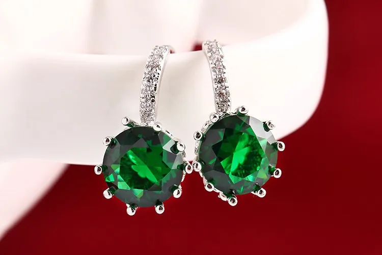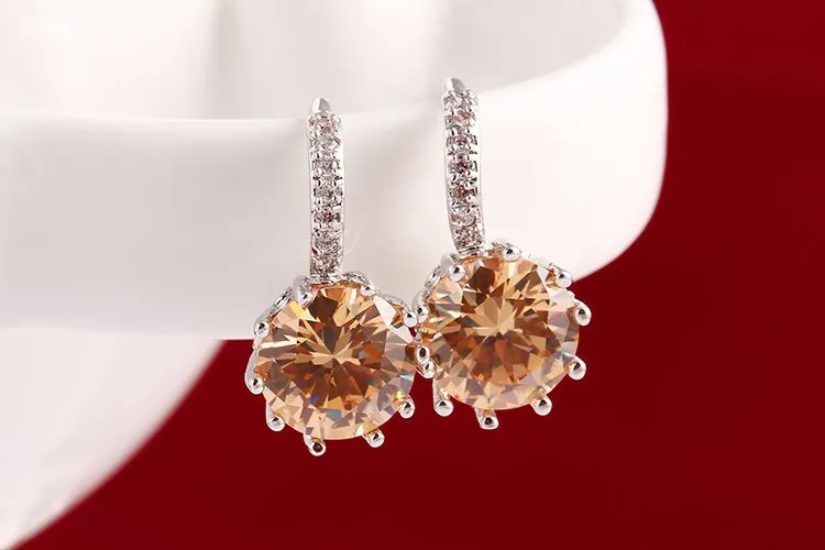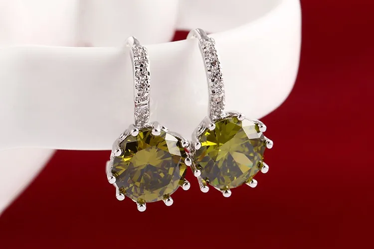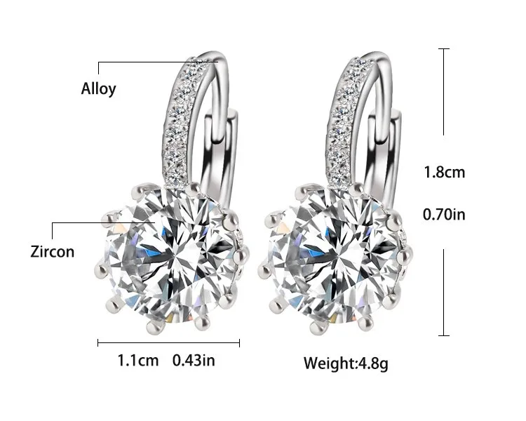 Fashion Alloy Silver Color 10 Color Geometry Crystal Earring Simple Jewelry Design Round Zirconia Earrings Statement For Women
