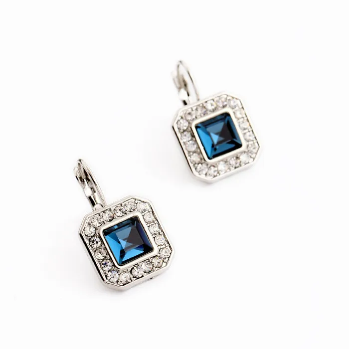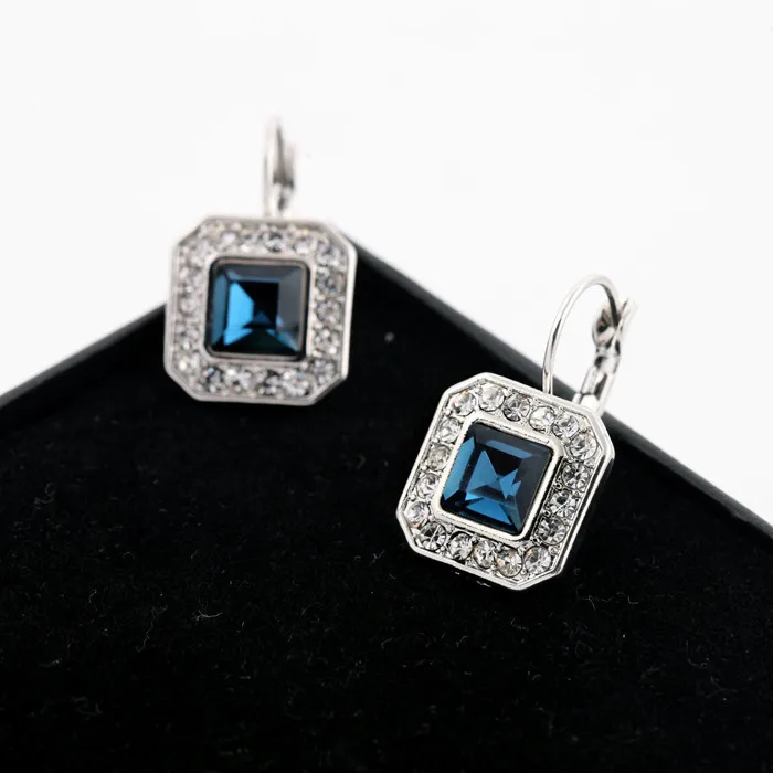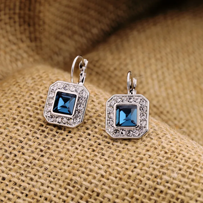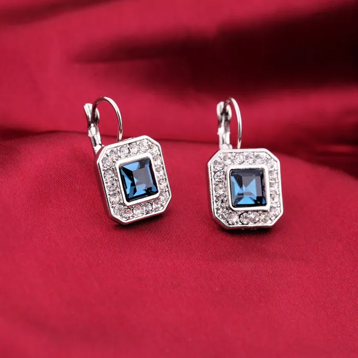 New Blue Geometric Rhinestone Crystal Drop Earrings For Women Trendy Jewelry Elegant Earrings Bijoux Wholesale