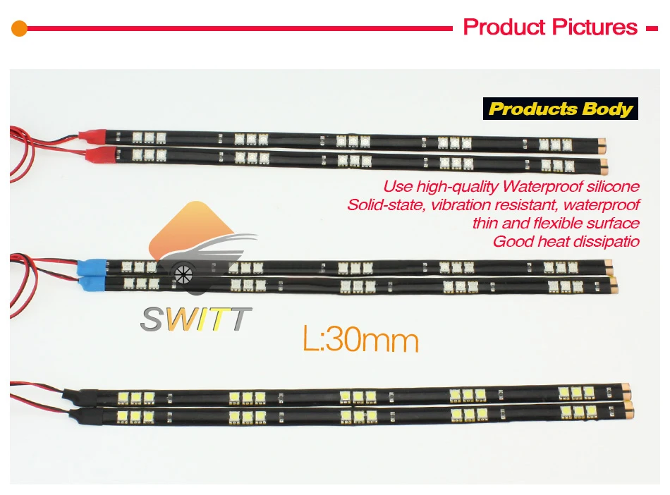 Newest 2pcs x 30cm 5050 15 smd DRL parking light led Car Styling Flexible LED Daytime Running Lights waterproof white blue red