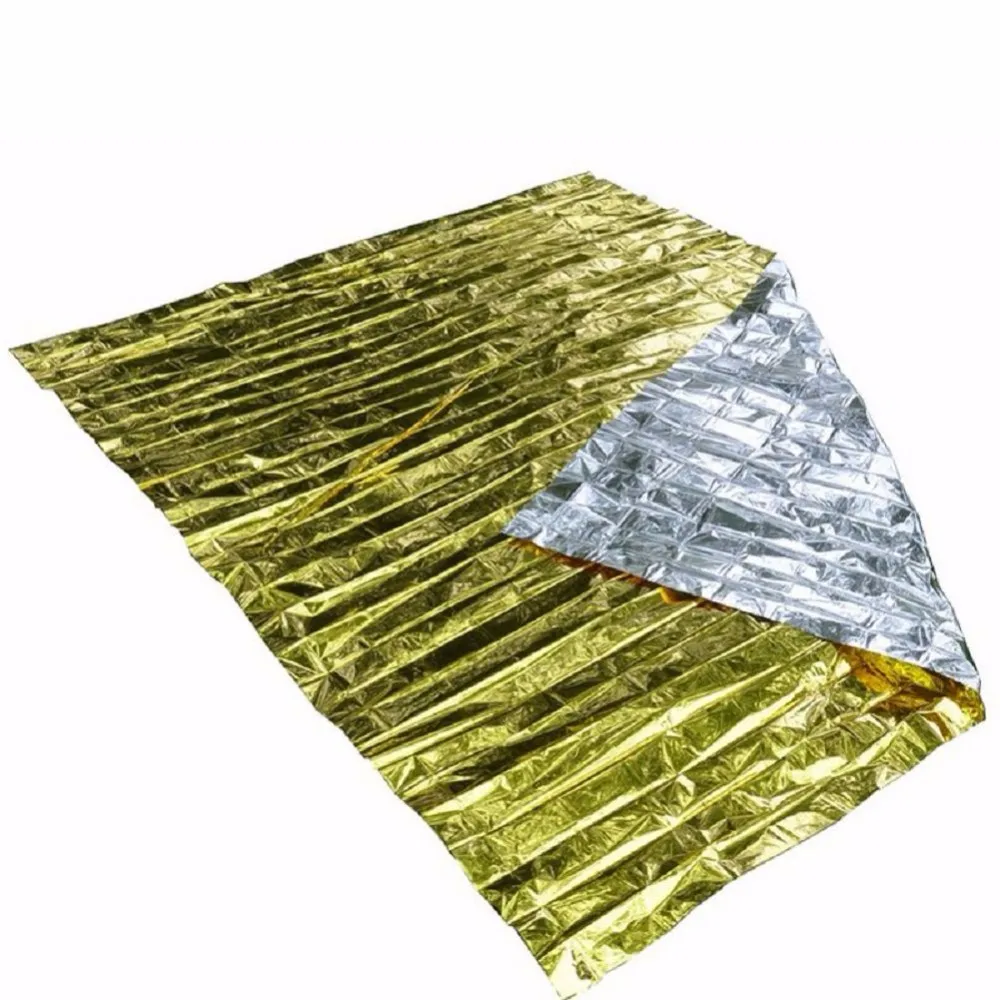 1pc Camping Outdoor Survival Emergency Kit Rescue Blanket Portable First Aid Curtain Emergency Camping Blanket Silver Golden