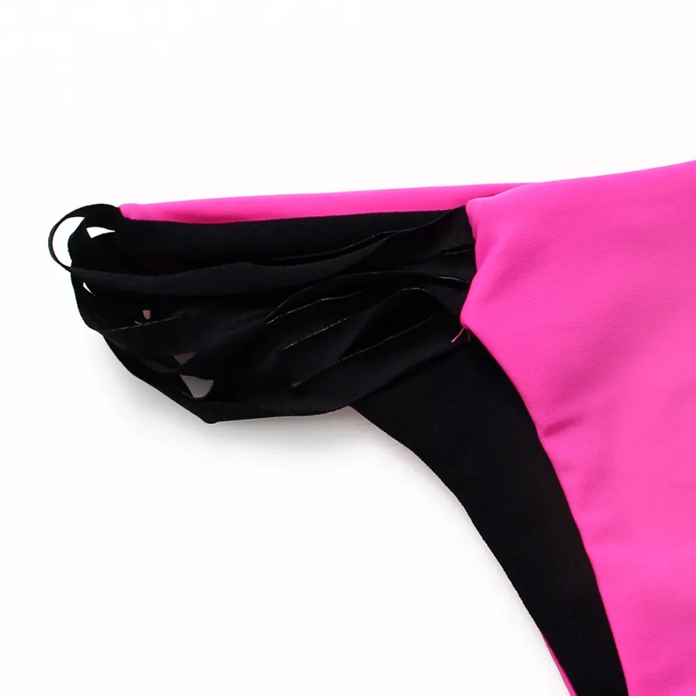 2016 Rose Red Sexy Strappy Bikinis String Swimsuits Hollow Out Swimwear Women Bathing Suit Bather Biquin With Brazilian bikinis set |