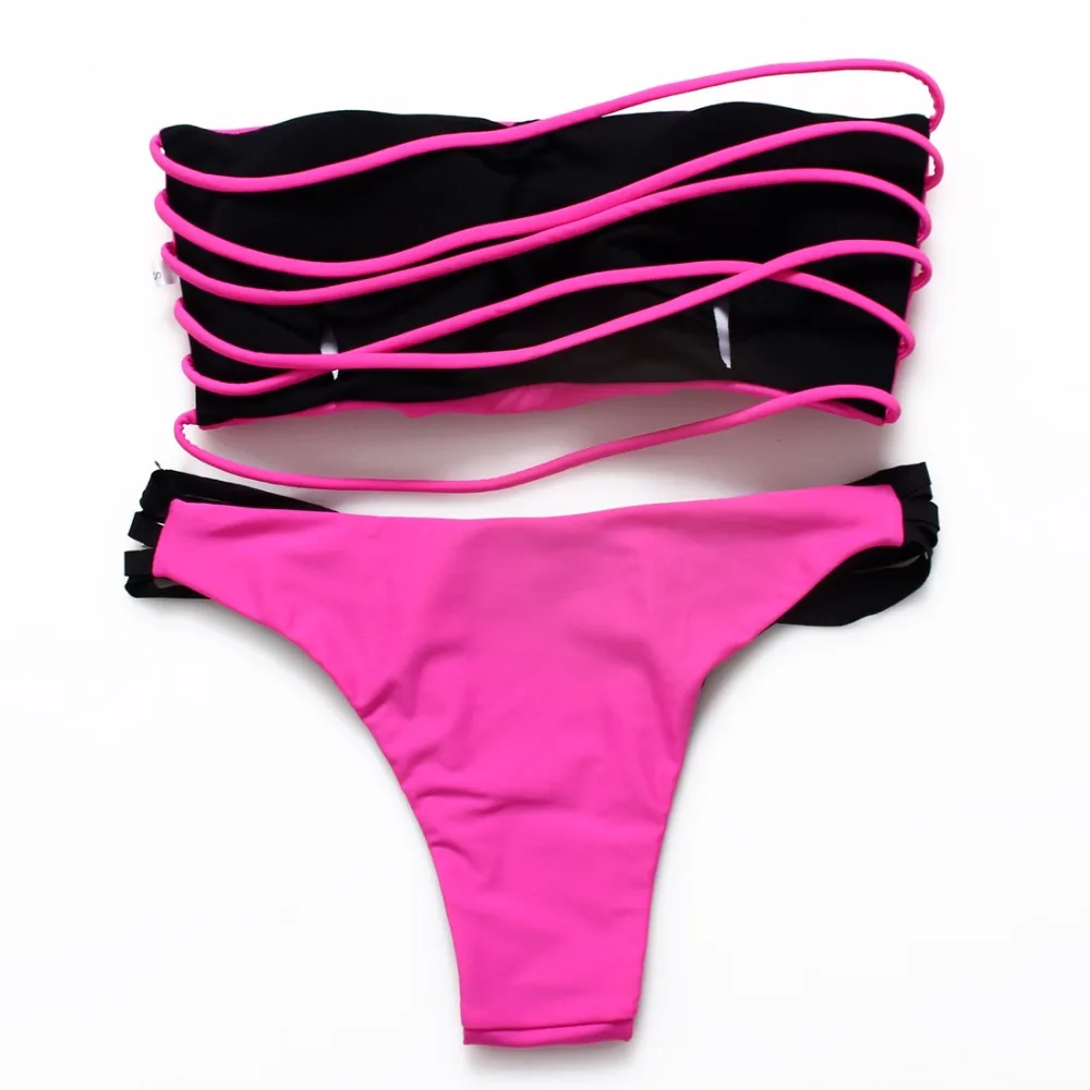 2016 Sexy Strappy Bikinis String Swimsuits Hollow Out Swimwear Women Bathing Suit Bather Biquin With Brazilian Bikinis set