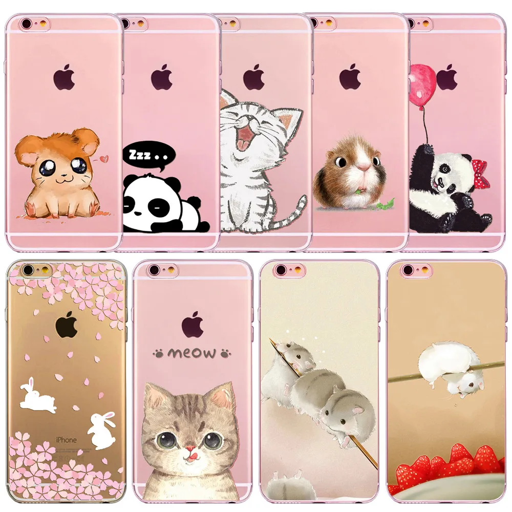 Fundas Mobile Phone Case Cover for iphone 6 6S 4.7" Soft Slim TPU Transparent Soft Cute Animal Cat Hamster Panda Rabbit Bags