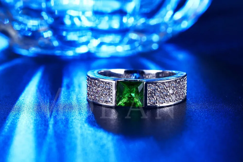 MDEAN Rings for Women Green White Gold Color Women Rings AAA Zircon Jewelry Wedding Fashion Size5 6 7 8 9 10MSR210