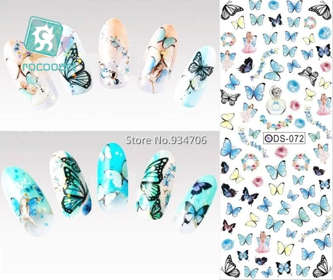 Rocooart DS072 2017 Nail Design Water Transfer Nails Art Sticker Color Butterfly Nail Wraps Sticker Watermark Fingernails Decal
