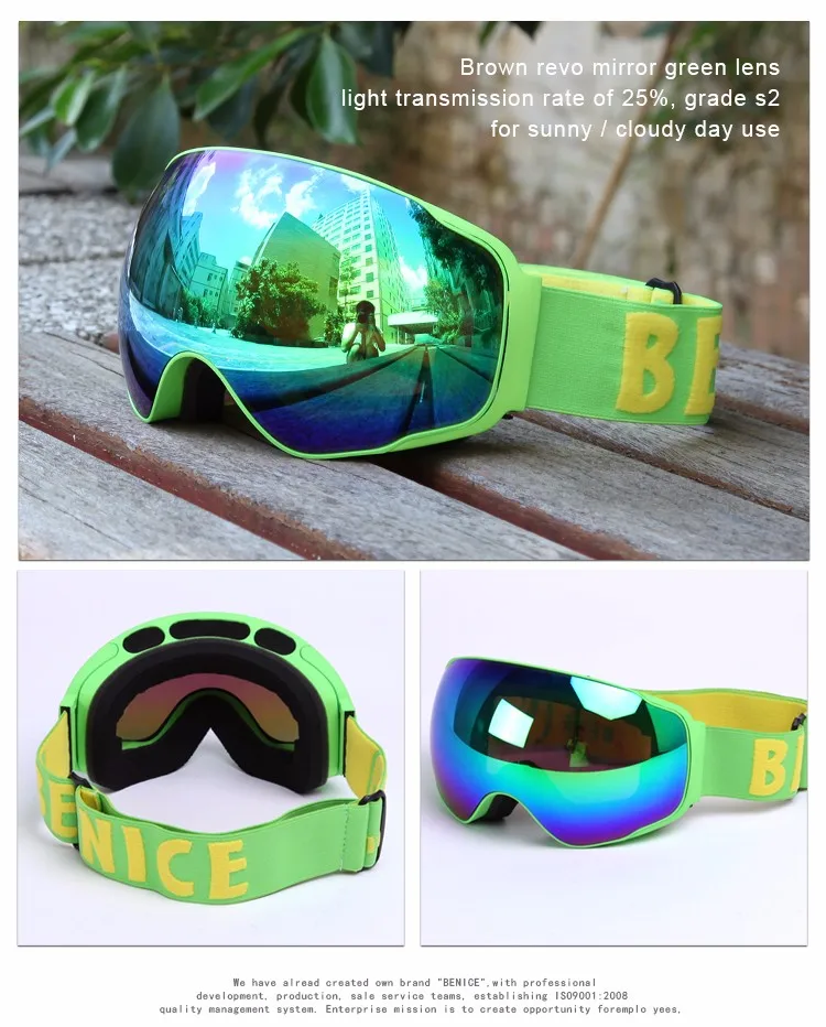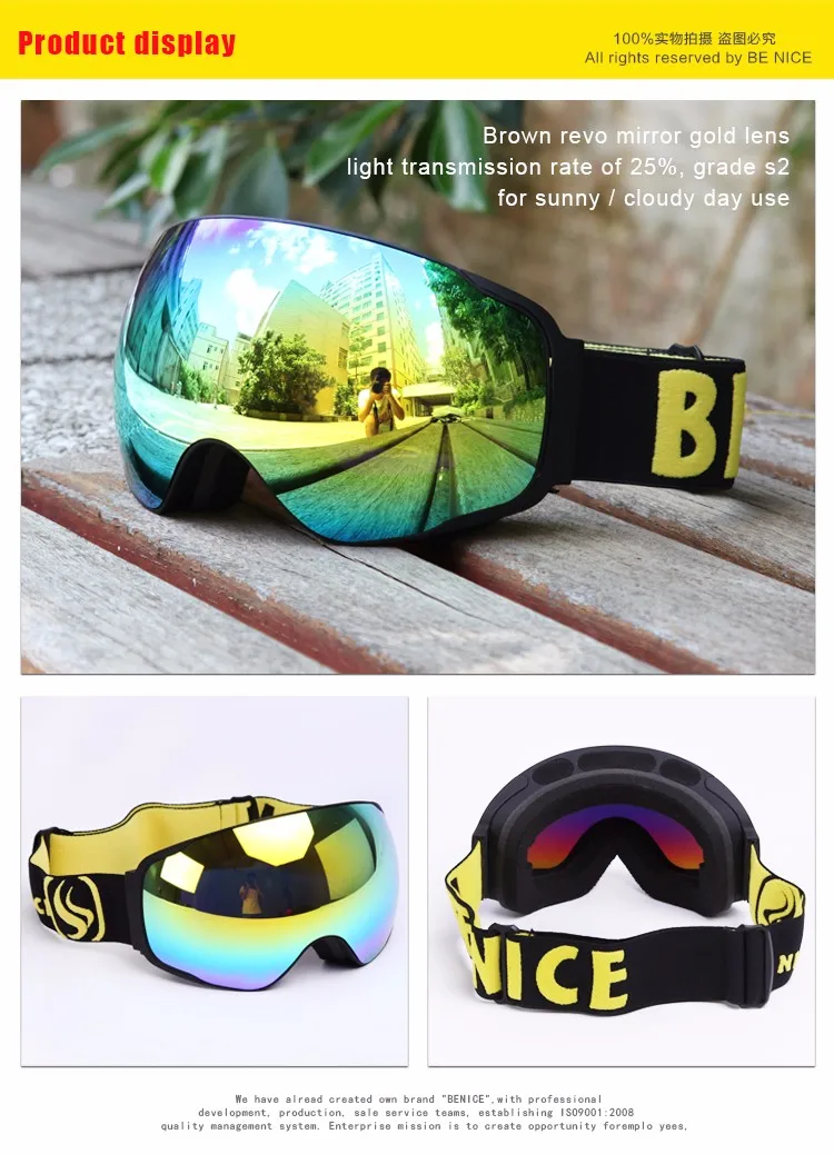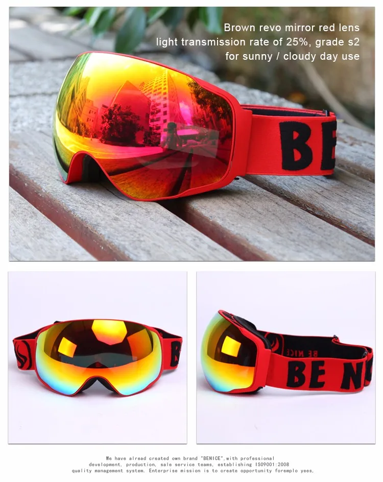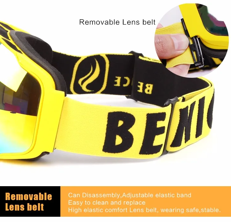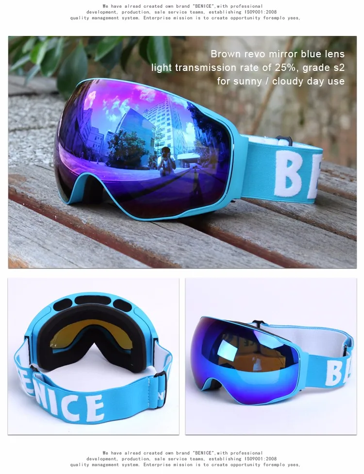 Benice New Design Ski Goggle Snow Glasses /UV- Protection Multi-Color double anti-fog lens Snowboard Skiing Goggle with free bag