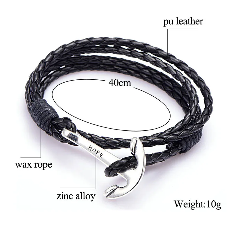 40cm PU Leather Men Bracelet Jewelry Man Anchor Bracelet Wristband Charm Braclet For Male Accessories Hand Cuff