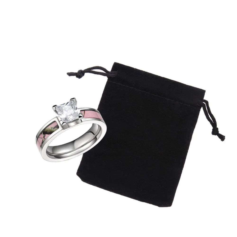 New Fashion Ring For Women Titanium 5MM Light Pink Tree Camo Ring Engagement Rings Camo Wedding Band aneis feminino