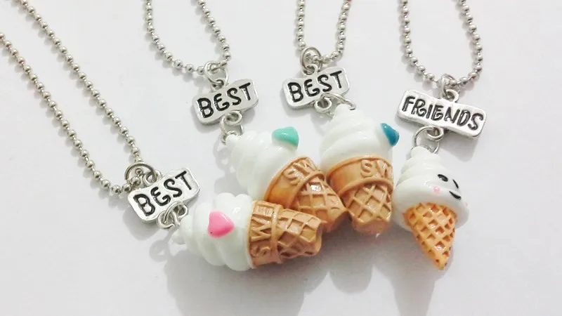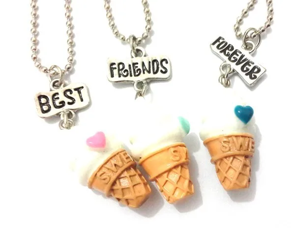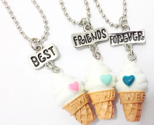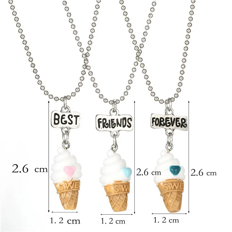 Best Friends BFF resin ice-cream pendant bead chain necklace,3 colors