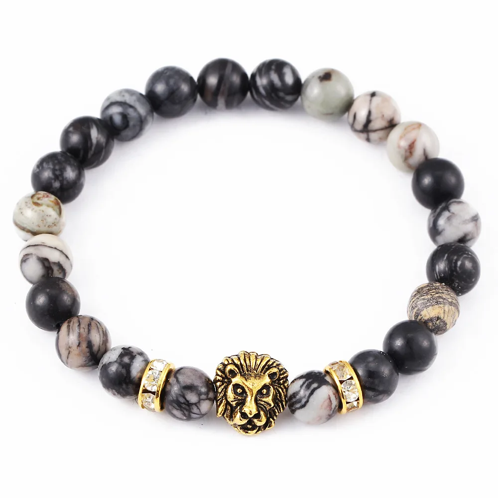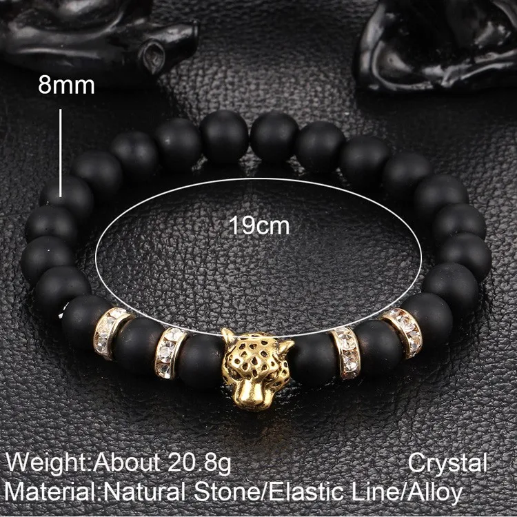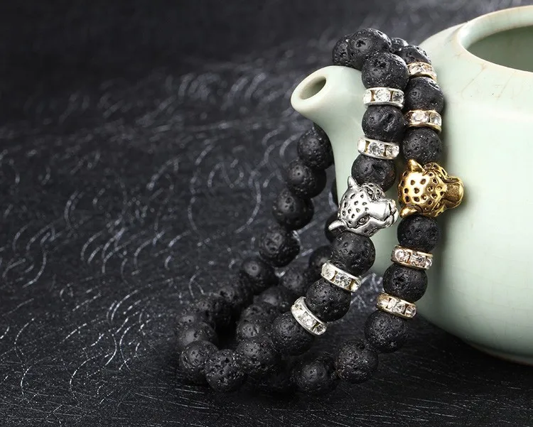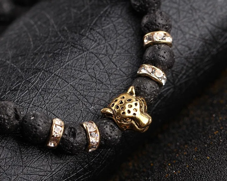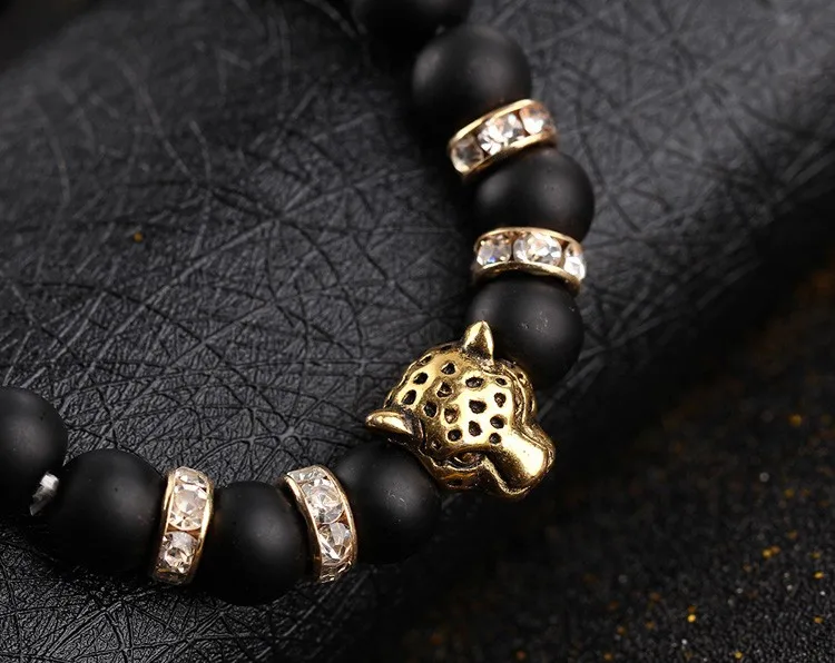 Phesee Antique Crystal Gold and Silver Plated Buddha Leopard Head Bracelet Charm Yoga Bracelets For Men Women Pulseras E0432