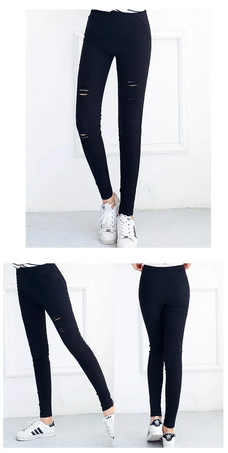 Women Jeans Denim Ripped jeanse Pencil pants High Elastic Holes in knees Skinny sexy Bottom Women Slim Trousers Summer leggins