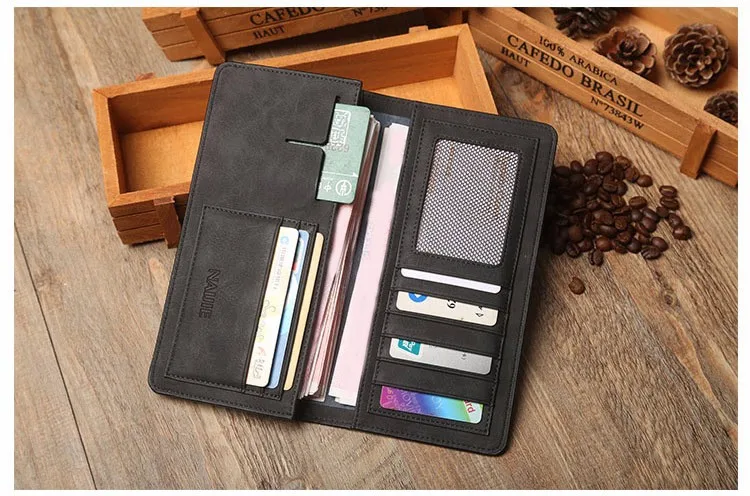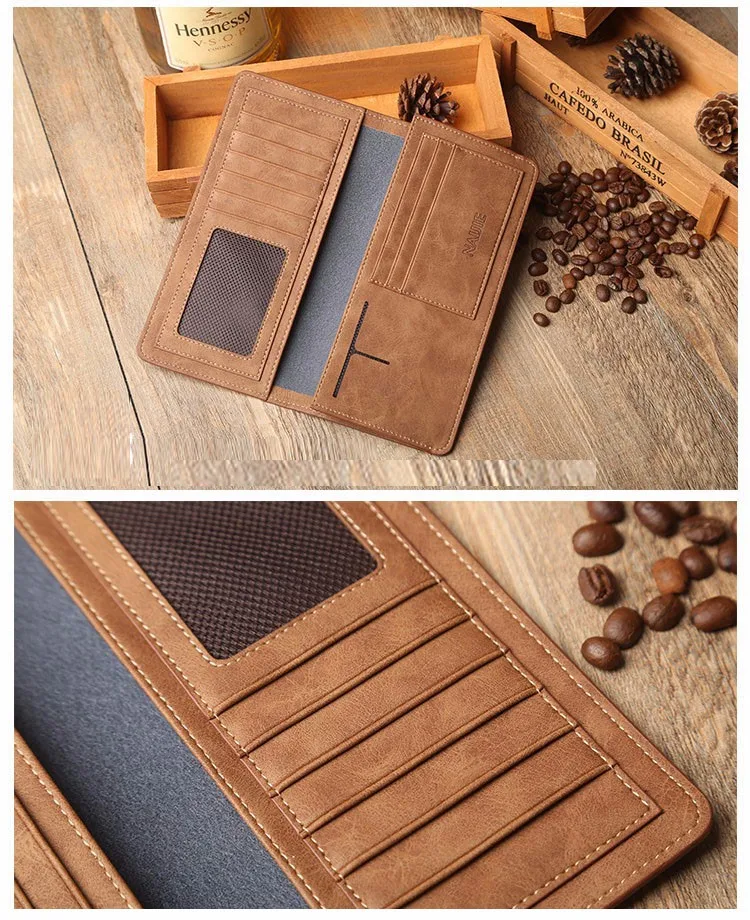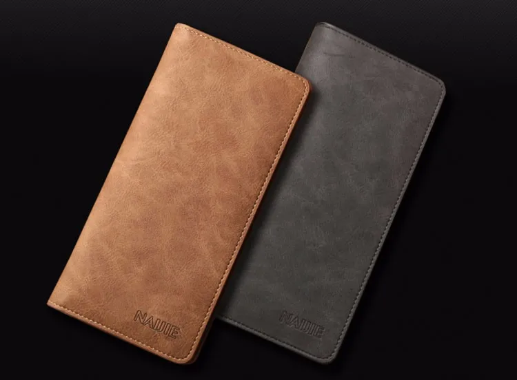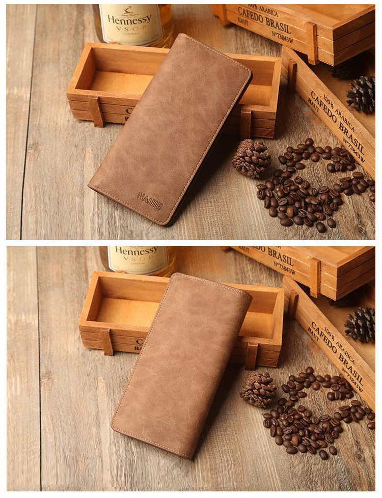 2017 Solid Color Cowhide Leather Men Long Wallets Dollar Price Oxhide Card Holder Soft Purse Male Business Casual Clutch Wallet