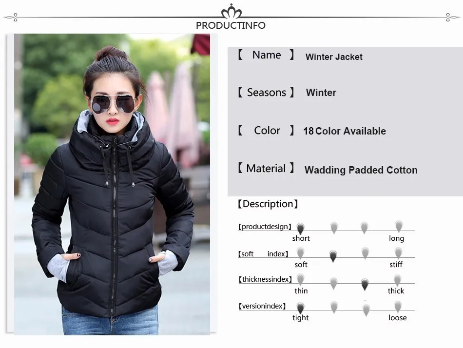 2017 Winter Jacket women Plus Size Womens Parkas Thicken Outerwear solid hooded Coats Short Female Slim Cotton padded basic tops