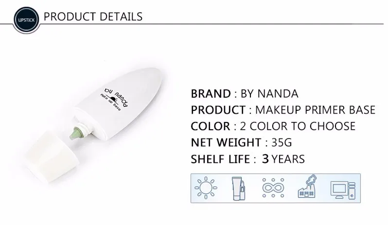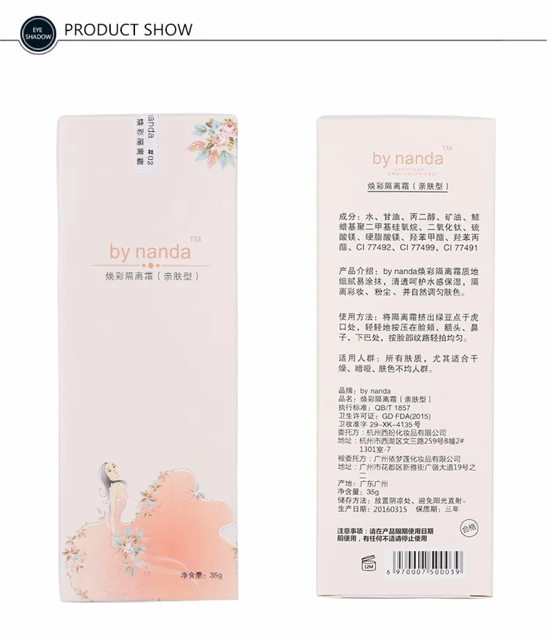 BY NANDA 2 Color Makeup Base Face Foundation Primer Make Up Cream UV Protect Sunscreen Moisturizing Oil Waterproof Cosmetics 35g