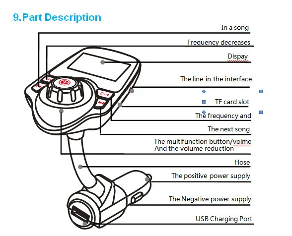 This device is a Bluetooth MP3 player developed for car-used, which equipped with professional high-performance Bluetooth module and MP3 decoder chip.