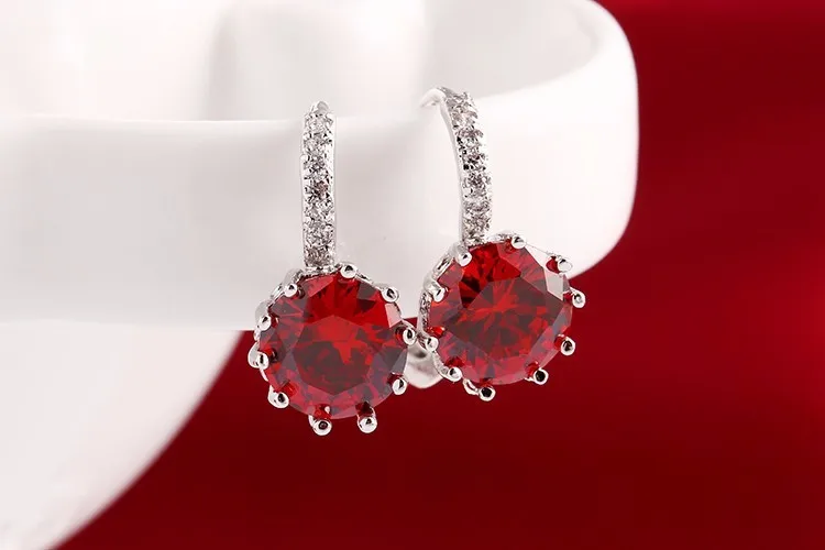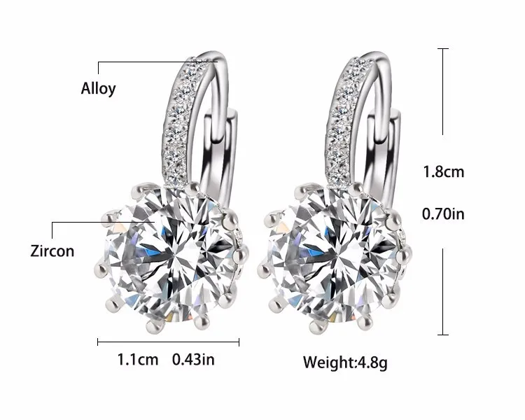 Fashion Alloy Silver-Plated 5 Color Geometry Crystal Earrings Simple Jewelry Design Round Zirconia Stud Earrings For Women
