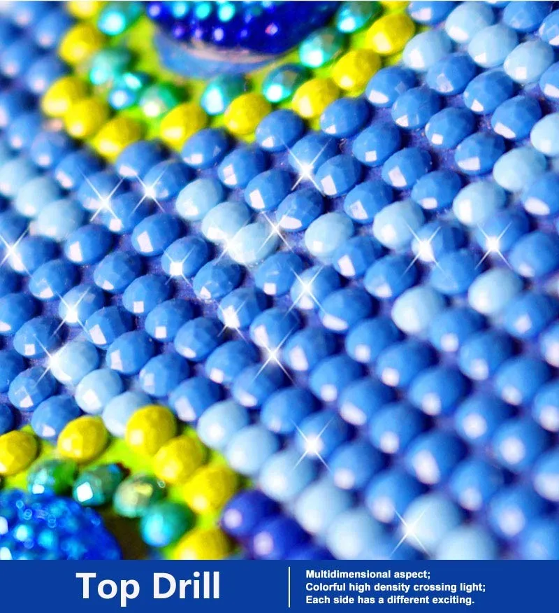 -Features: Round diamond ; Partial Diamond cover the canvas complete.