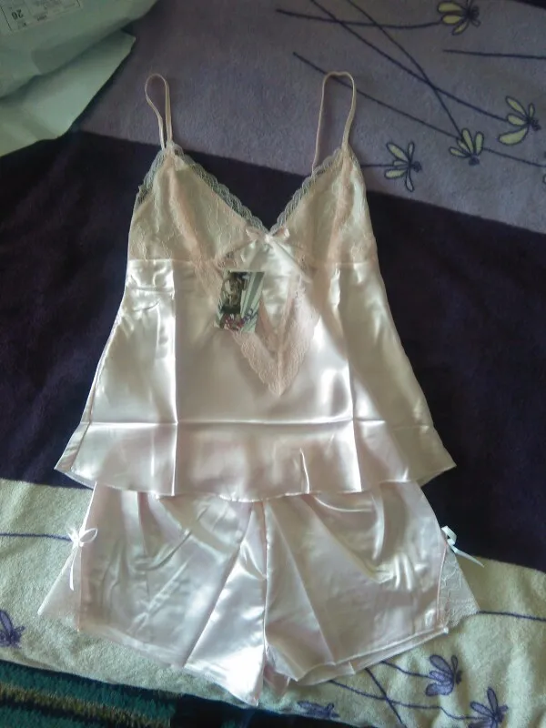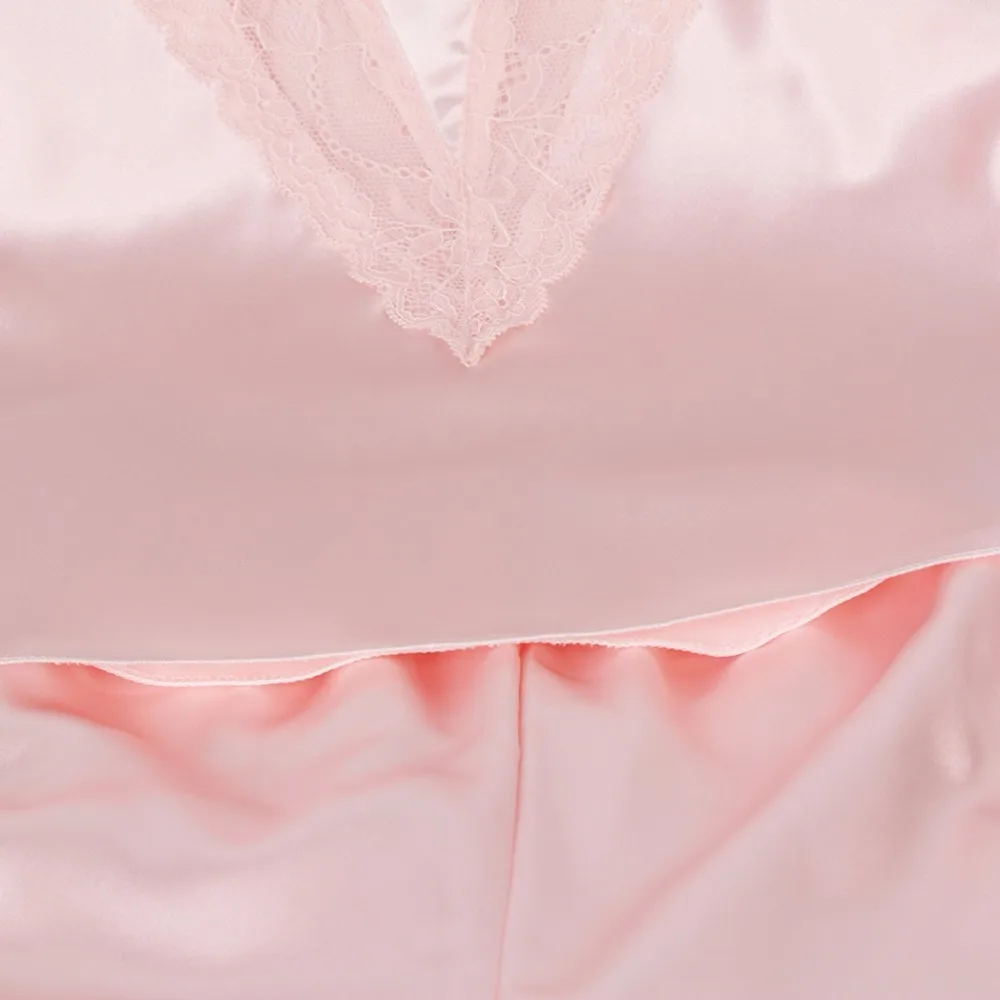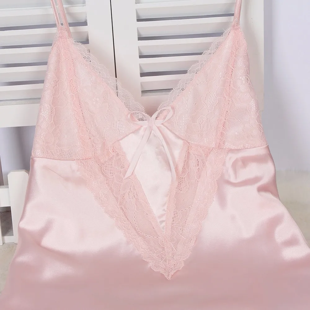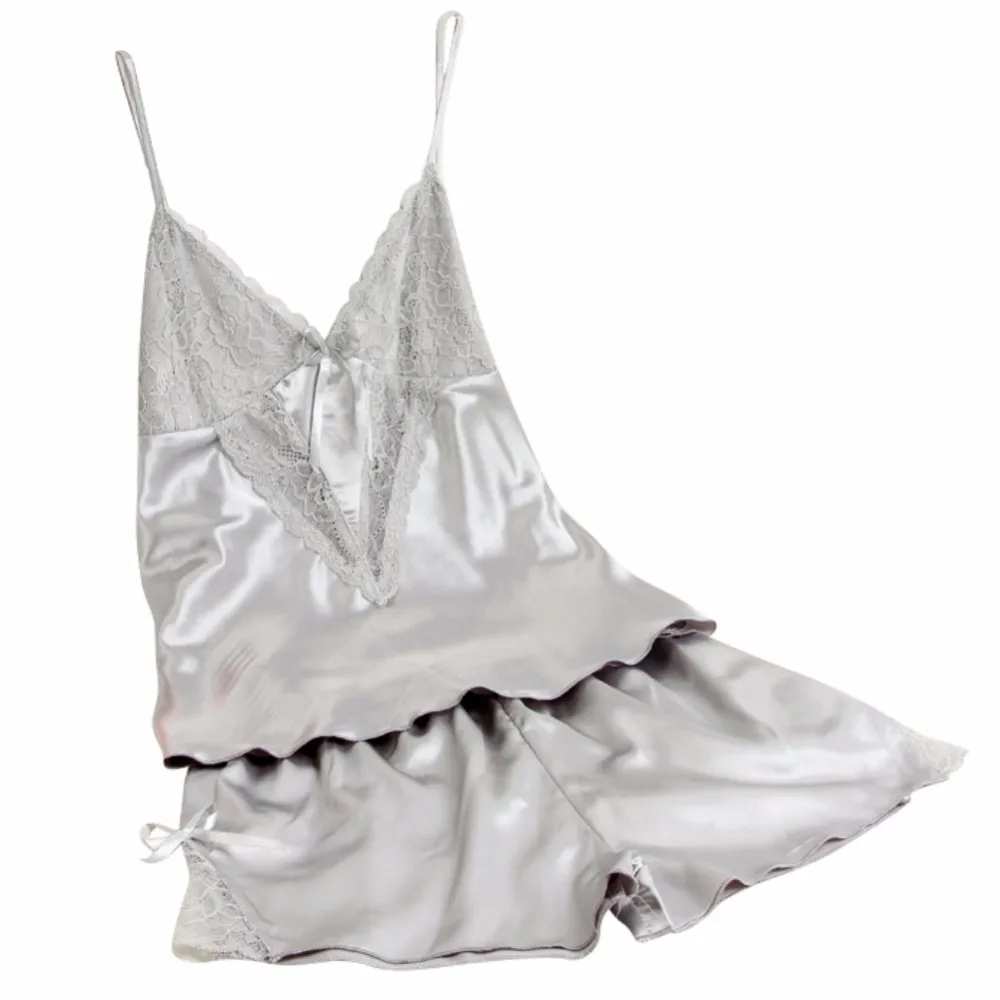 Women Sexy Summer Pajamas Silk Pijamas Pyjama Minion Sleepwear Deep V Sleeveless Suspenders Lingerie Set