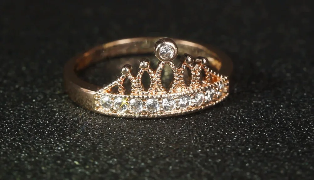 GR.NERH Top Selling High Quality Gold-color Princess Crown 10 PCS Zircon Rings Wedding Ring For Women