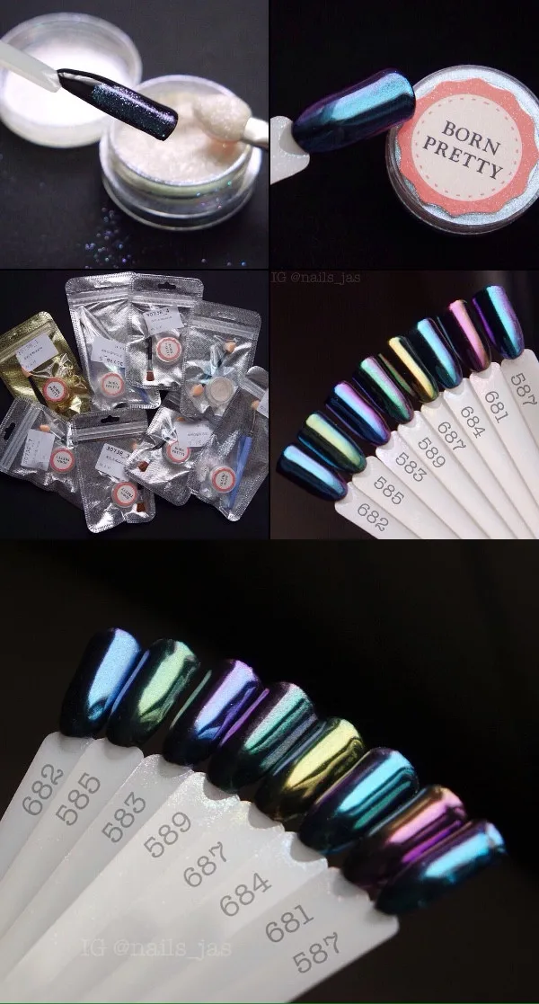 1g/box Shiny Mirror Glitter Nail Powder Gold Sliver Glitter Chameleon Powder Nail Art Chrome Pigment Glitters Dust 10 Colors